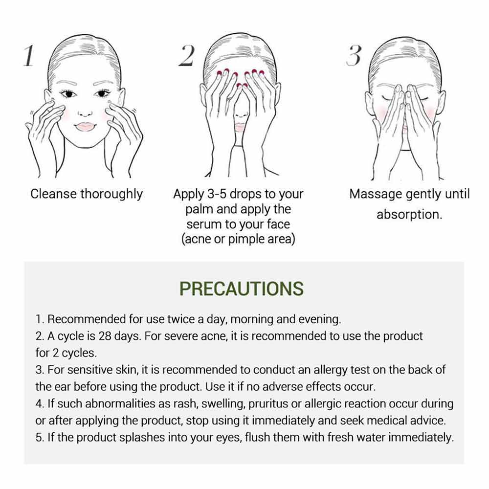 Treat and remove acne and pimples, undo skin damage, shrink the pores, improve the rough phenomenon caused by the acne and soothe the skin and reduce acne scars.